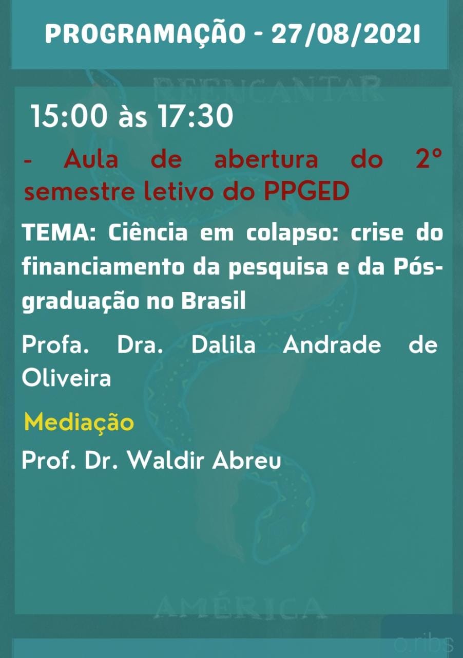 Abertura do 2º semestre letivo de 2021 do PPGED