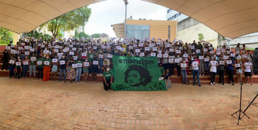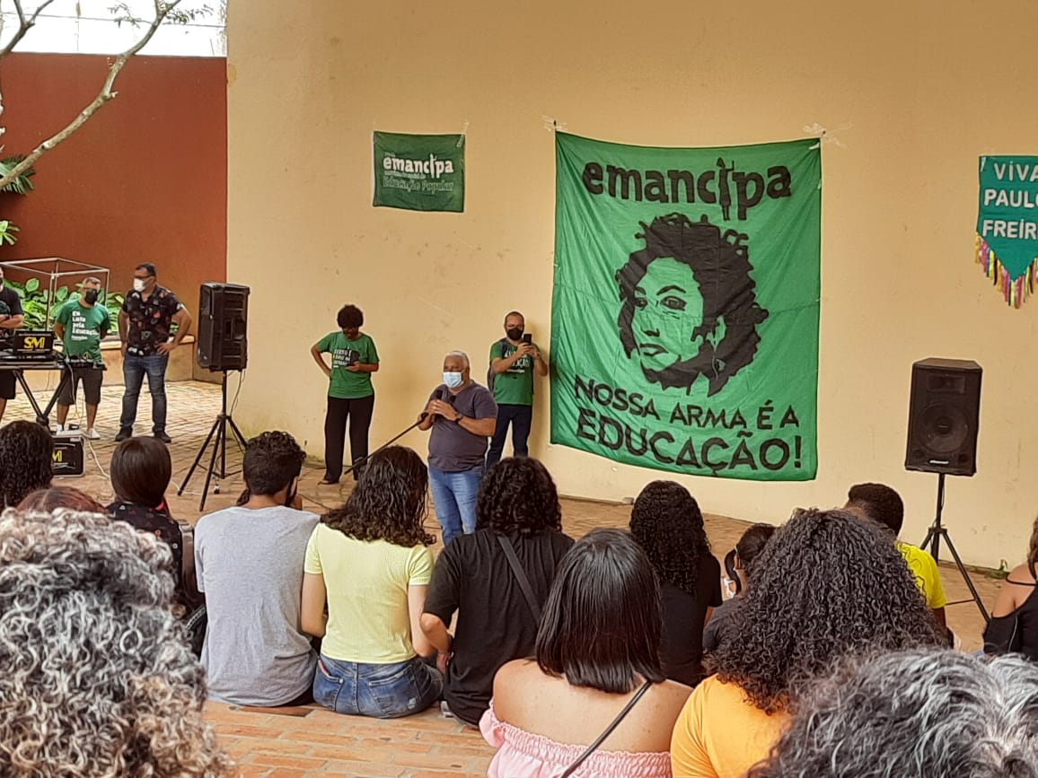 A Professora do PPGED e coordendora do Projeto de Extensão Emancipa, Lúcia Isabel, coordena aula inaulgural realizada no sábado (20/03/2022) no Memorial dos Povos, em Belém.