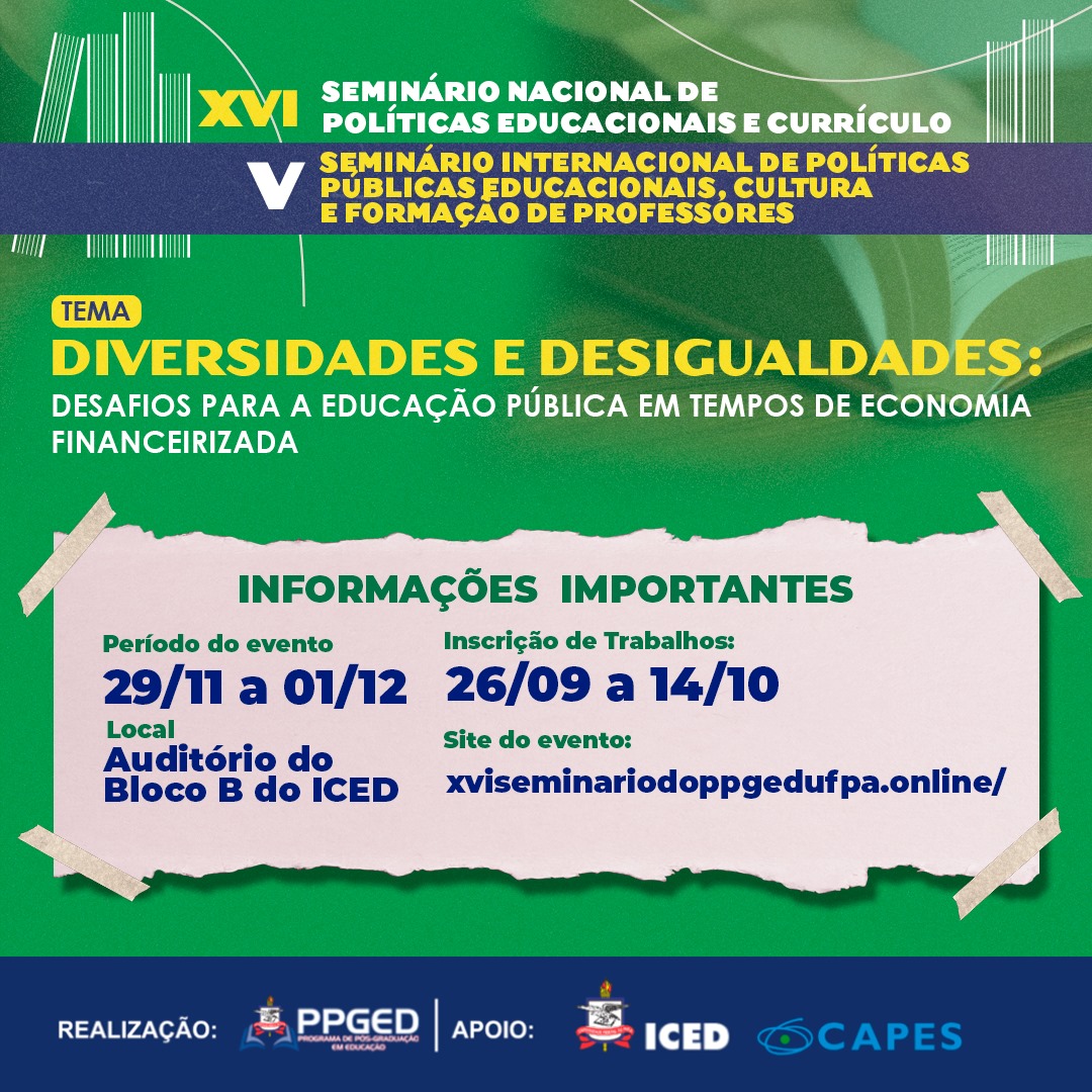 Link do evento para maiores informações: https://xviseminariodoppgedufpa.online/