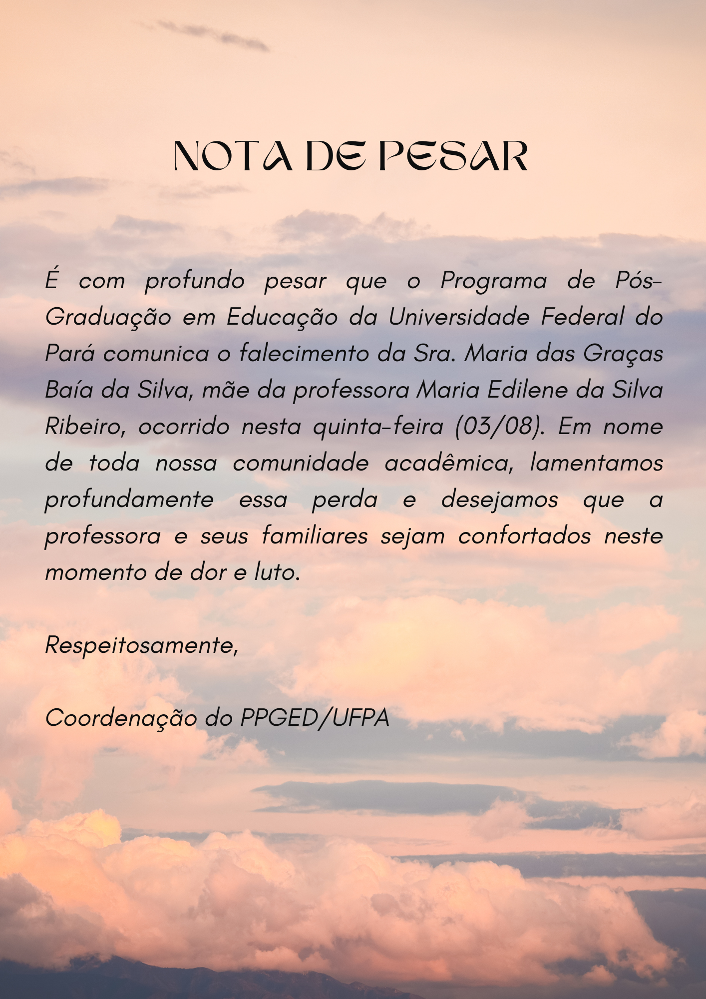 ATENÇÃO!!!!!!! Em função da paralisação dos servidores da UFPA no dia de hoje (10/08/2023) e o não funcionamento da secretaria do PPGED, a Comiss&at...
