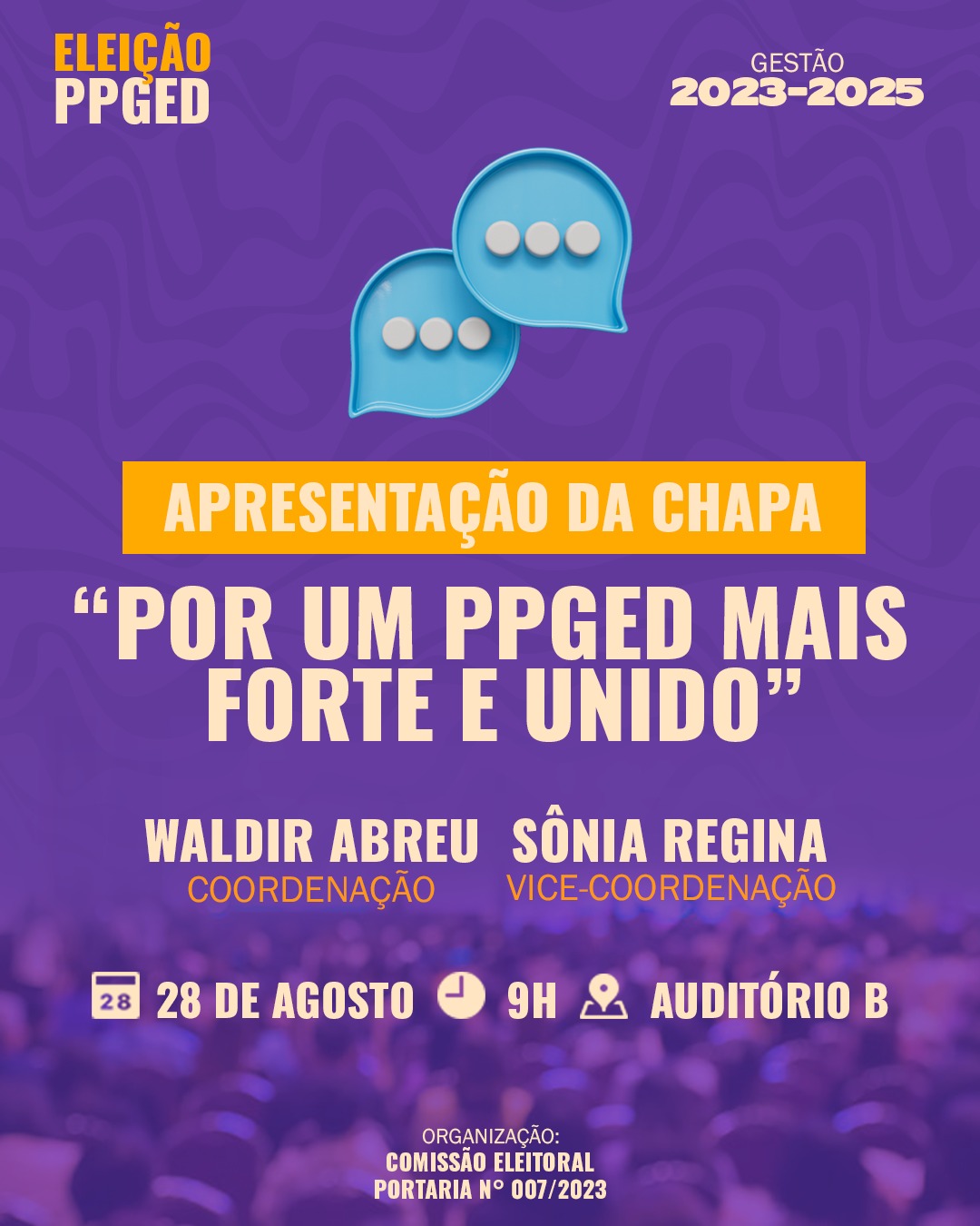 Apresentação do Programa da chapa "Por um PPGED mais forte e unido" - Dia 28 de agosto às 09h no auditório B