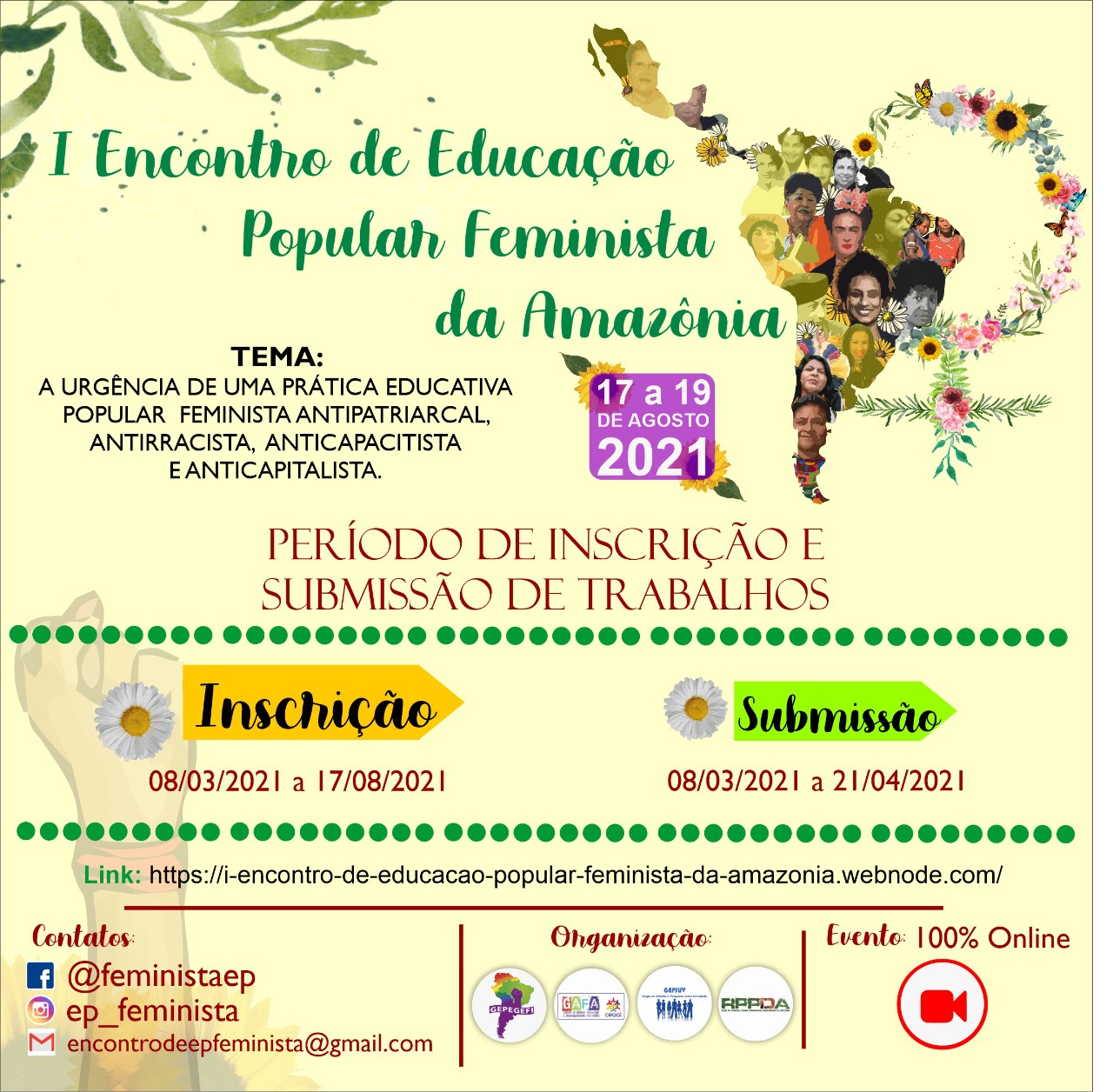 GEPEGEFI, GEPJUV, GAFA e RPPDA convidam para o " I Encontro de Educação Popular Feminista da Amazônia".