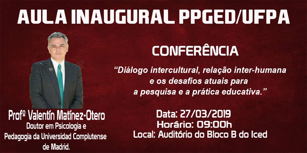Aula Inaugural do PPGED Dia 27/03 às 09h no Auditório B do ICED Prof. Dr. Valentin Martinez-Otero (Universidad Complutense de Madrid)