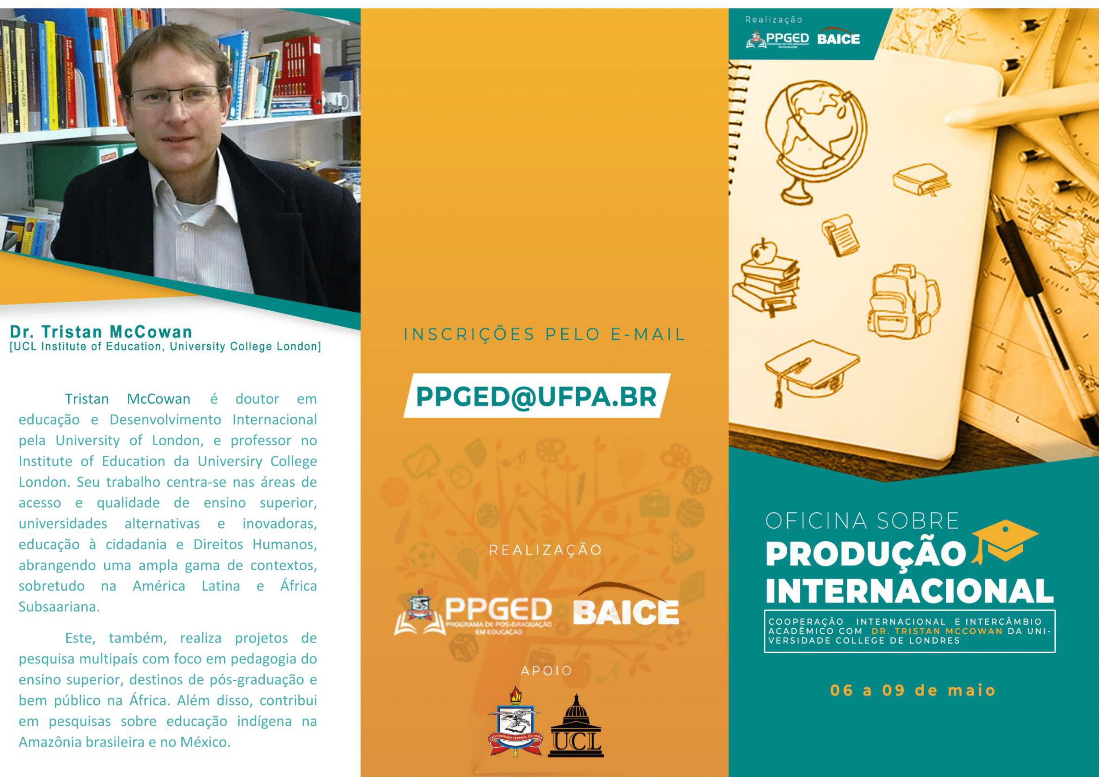 Oficina sobre Produção Internacional com o Prof. Tristán McCowan (University College of London), do Reuno Unido. De 06 à 09 de maio de 2019 no Auditório B do ...