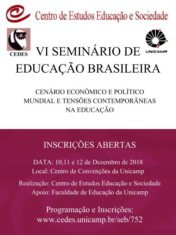 VI Seminário de Educação Brasileira - Cenário econômico e político mundial e tensões contemporâneas na educação 10,11 e 12 de dez...