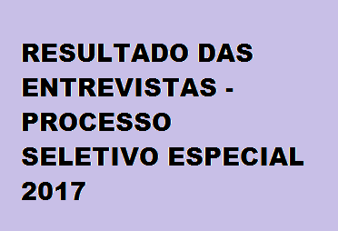 12/06/2017 - RESULTADO DAS ENTREVISTAS - PROCESSO SELETIVO ESPECIAL 2017