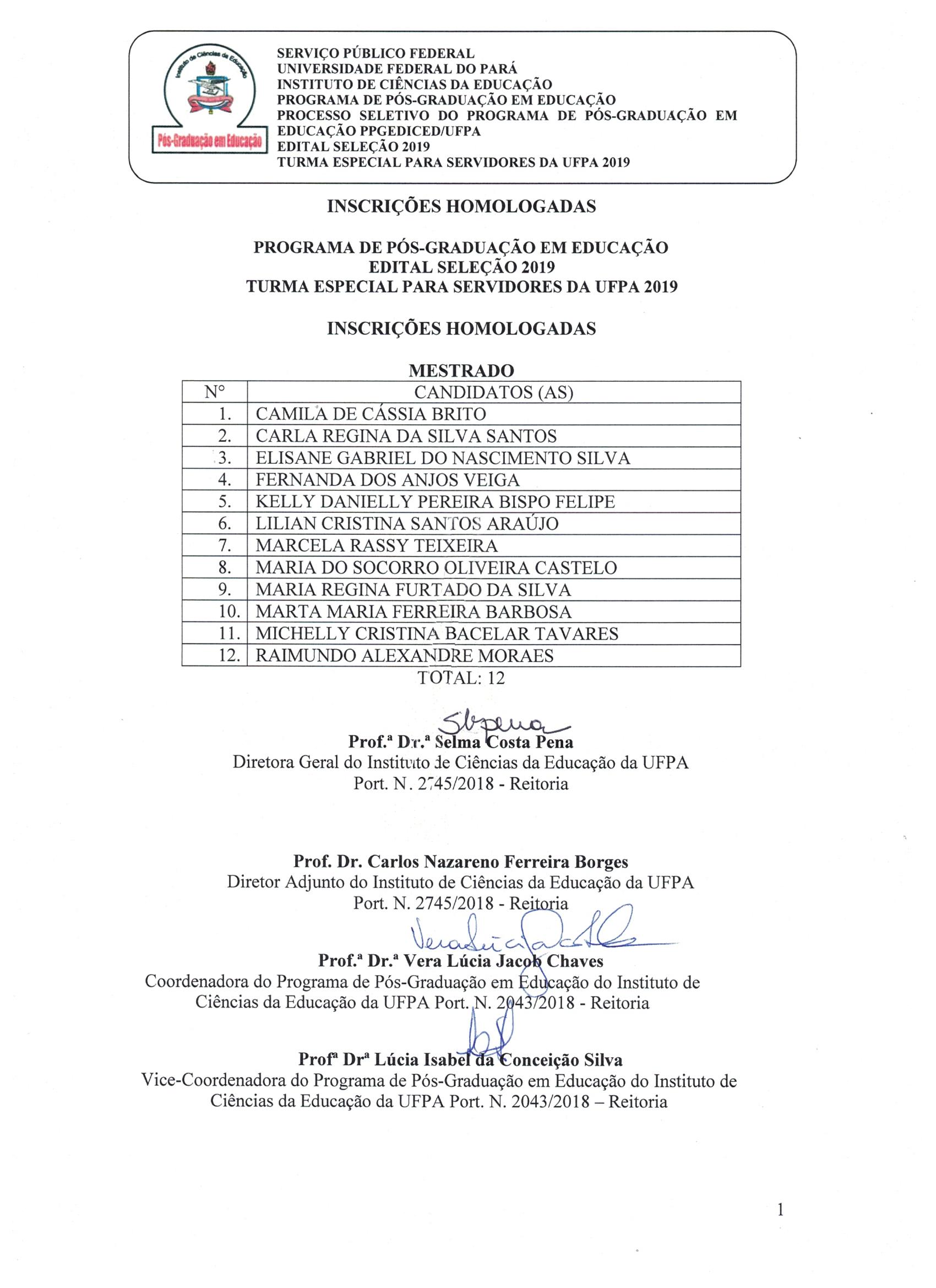 Homologação das Inscrições ao Processo Seletivo (Mestrado e Doutorado em Educação) - Turma 2018